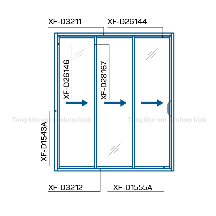 Đặt mua HỆ CỬA ĐI TRƯỢT XTDA 93 3 RAY