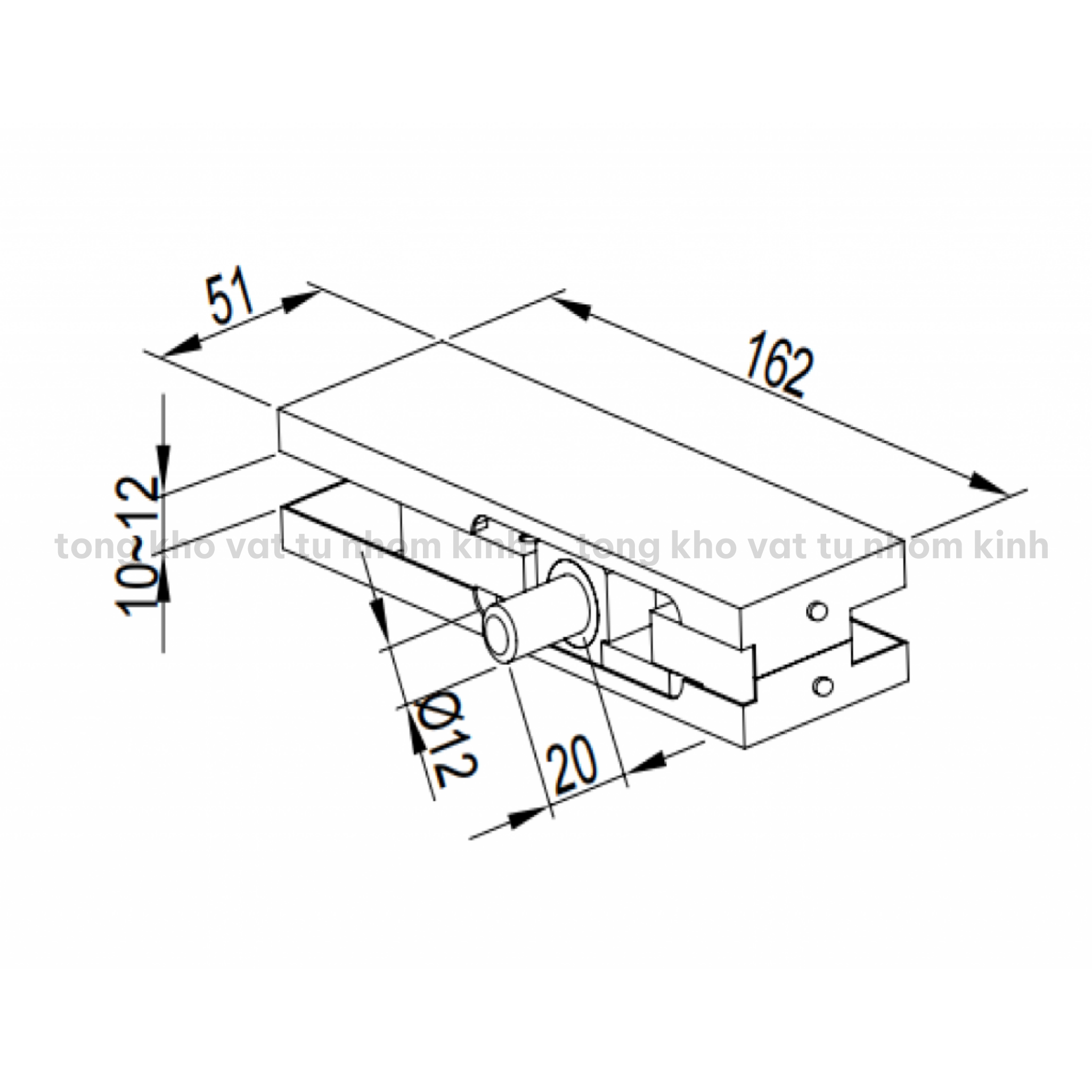 - Lắp đặt trên tấm kính fix phía trên và cần được khoét kính, sử dụng kết hợp với kẹp kính hệ 100kg