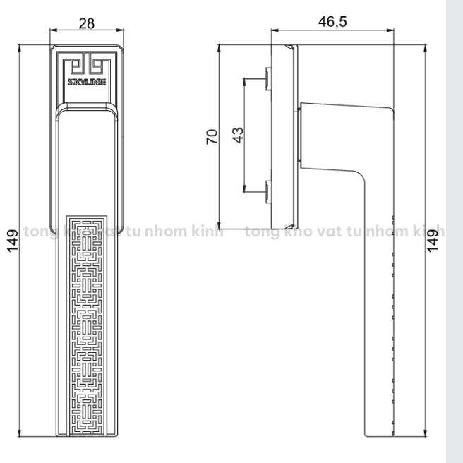 SKYLINE SK001CNC hiện có sẵn tại tổng kho vật tư nhôm kính, phù hợp cho xưởng gia công cửa, thầu thợ và đơn vị thi công công trình cần phụ kiện bền, đẹp và đồng bộ thẩm mỹ.