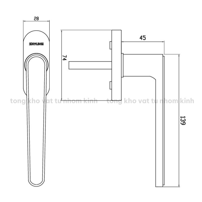SKYLINE SK003 hiện có sẵn tại tổng kho vật tư nhôm kính, phù hợp cho xưởng gia công cửa, thầu thợ và đơn vị thi công công trình yêu cầu phụ kiện bền, đẹp và đồng bộ thẩm mỹ.